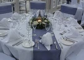 cruiser tables (ours) = 120" linens or 132" and tie in the middle/puddle on floor